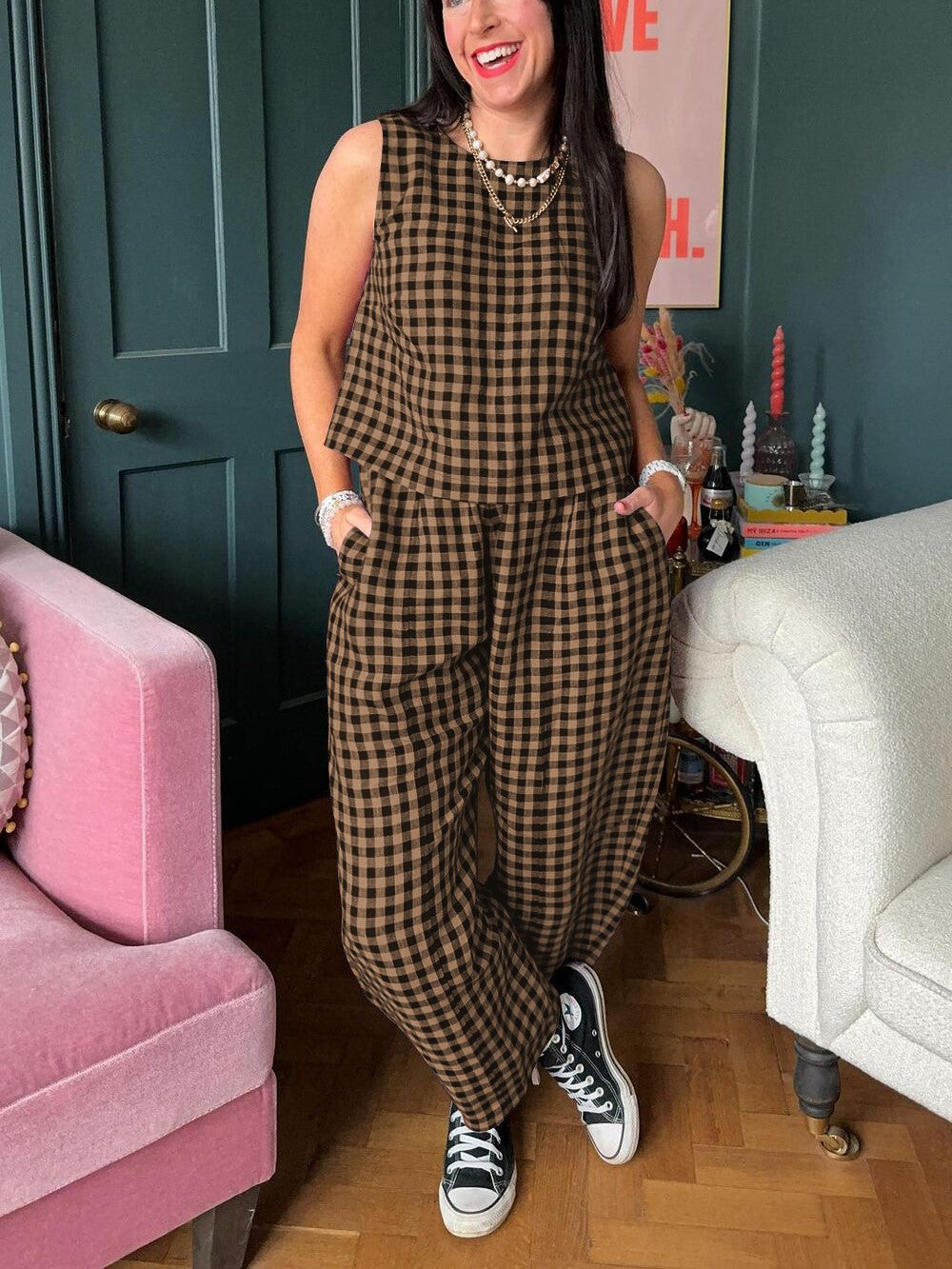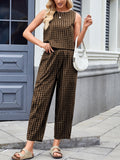 Women's Gingham Sleeveless Tank Top & Barrel Pants Set