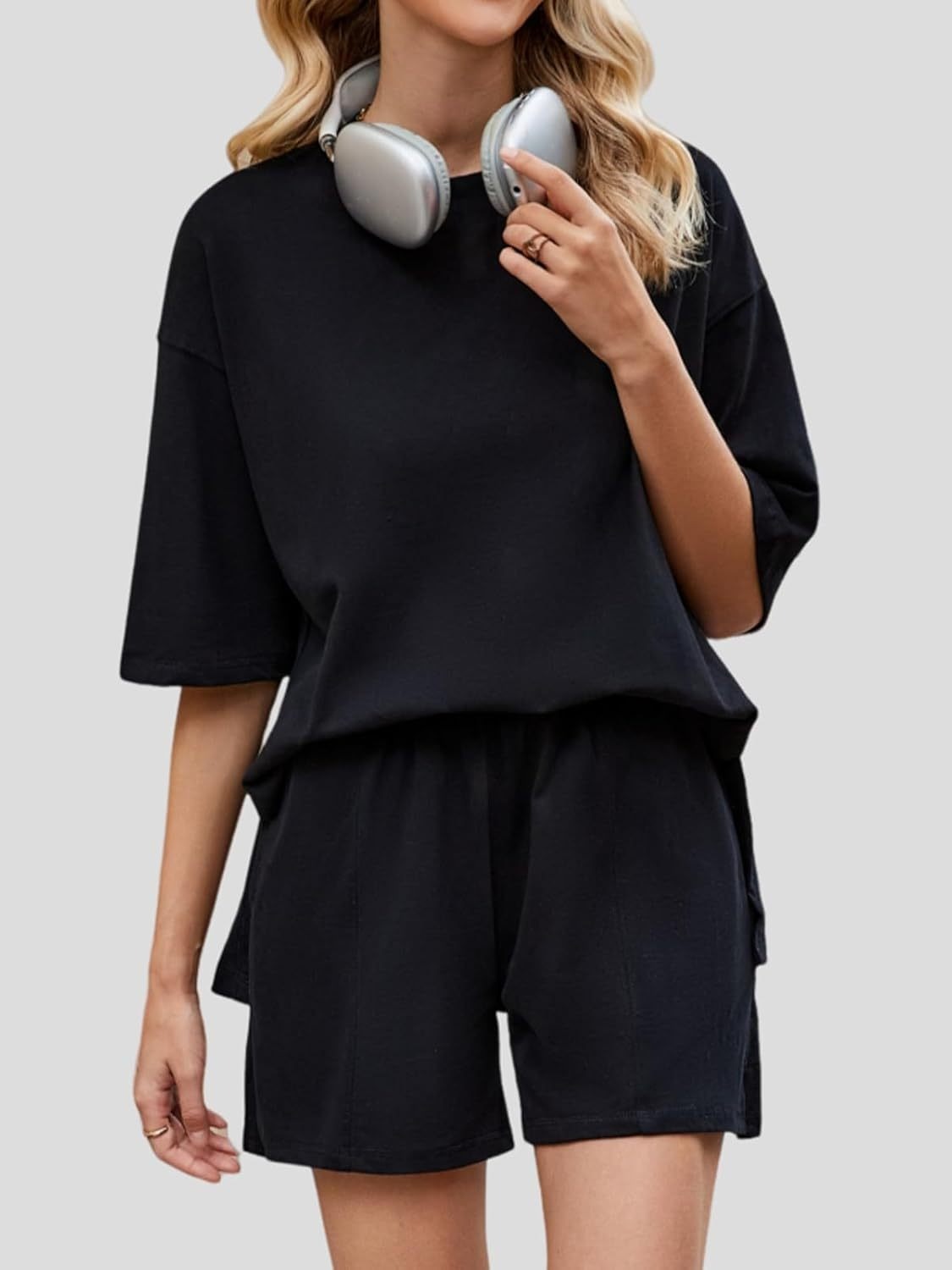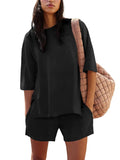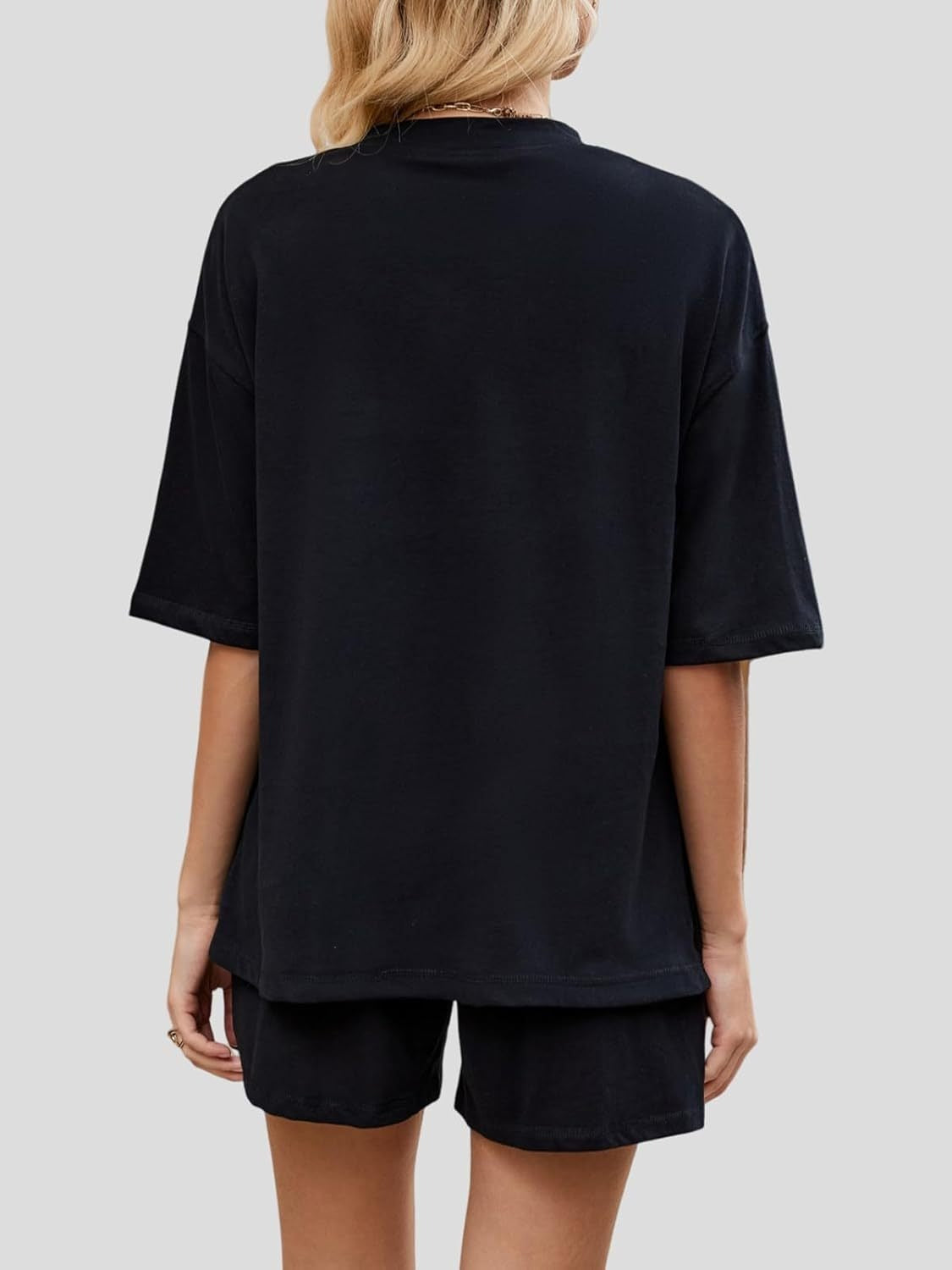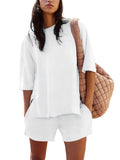 Womens Half Sleeve Crew Neck Summer Matching Lounge Sets