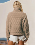 This Half Zip Long Sleeve Quilted Sweatshirt is designed for both style and comfort, featuring a half zip for easy wear and a quilted design for added warmth. The convenient front pocket adds functionality to this versatile piece, making it perfect for everyday wear. Stay cozy and chic with this must-have sweatshirt.