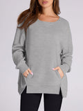 Women's High Low Side Slit Pullover Sweatshirt With Pockets