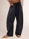 Women's High Waisted Drawstring Wide Leg Baggy Barrel Pants