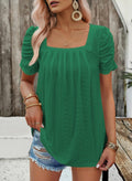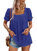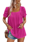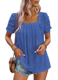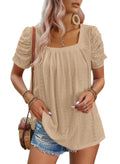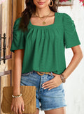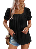 Designed to charm with effortless elegance, this Eyelet Pleated Blouse is a must-have for warm-weather days. Featuring a flattering square neckline, softly gathered short sleeves, and a breezy loose fit, it blends comfort and charm in perfect harmony.