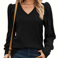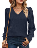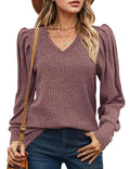 Women's Knit Shirt·Soft Puff Long Sleeve Blouse: This top features soft puff long sleeves, perfect for a cozy and stylish look.