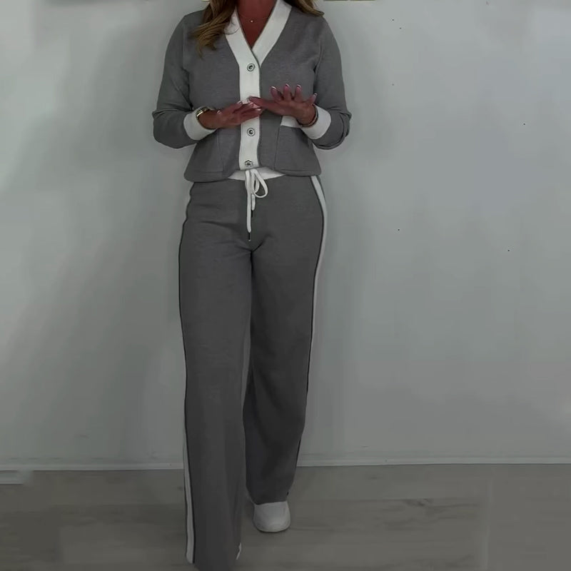 Women's Knitted V-Neck Button Cardigan & Pants Set