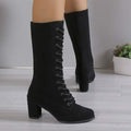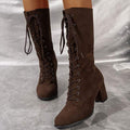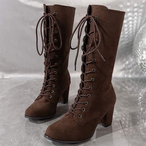 Women's Lace-Up Suede Block Heel Knee-High Boots