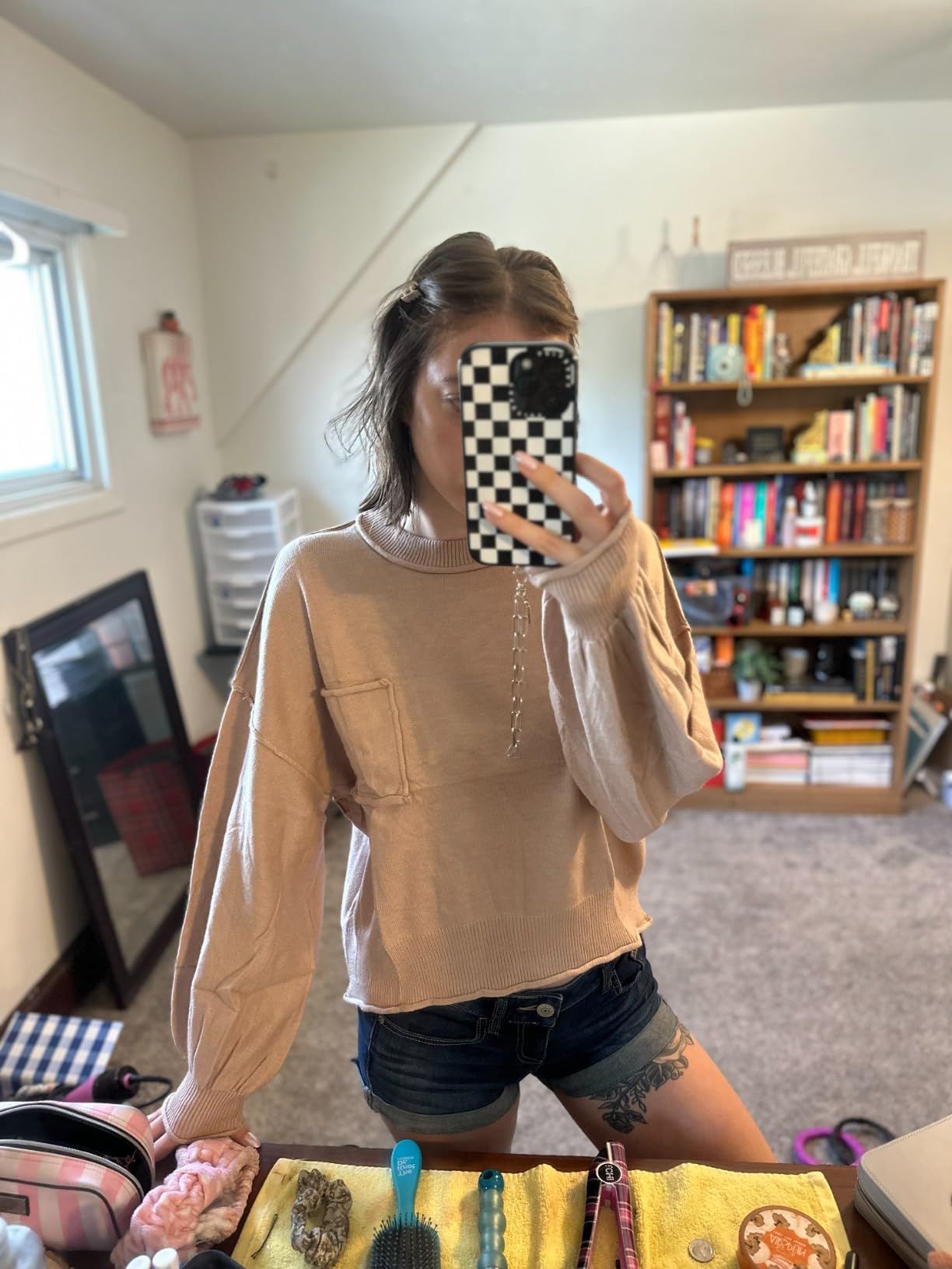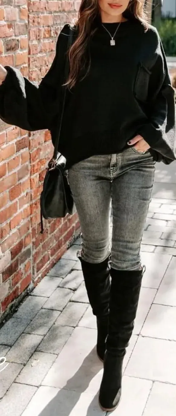 Looking for cute + comfy Fall outfit inspo? This sweater features distinctive balloon sleeves that add a touch of style and a fashion-forward silhouette.