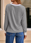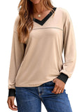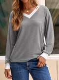 Women's Long Sleeve Casual Soft V Neck Oversized T Shirts