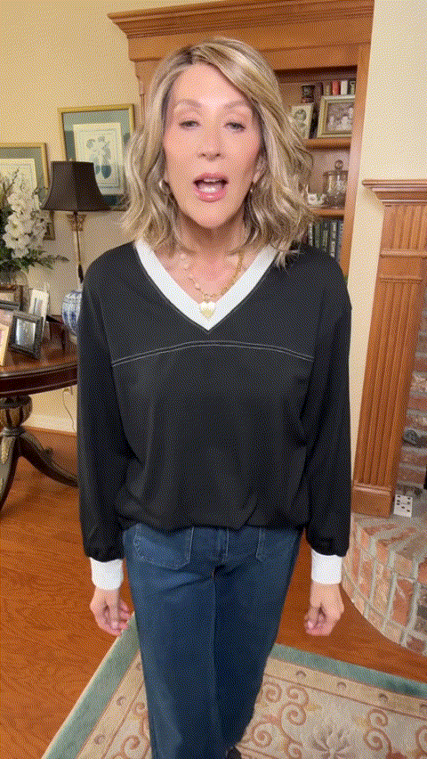 - color block in neckline and sleeve cuff