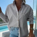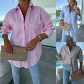 Women's Long Sleeve Casual Striped Loose Mid-Length Shirt