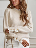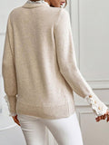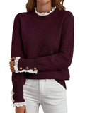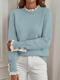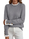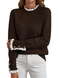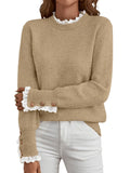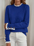 Women's Long Sleeve Knitted Button Lace Trim Sweater