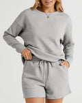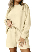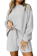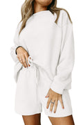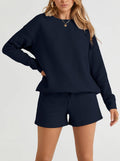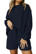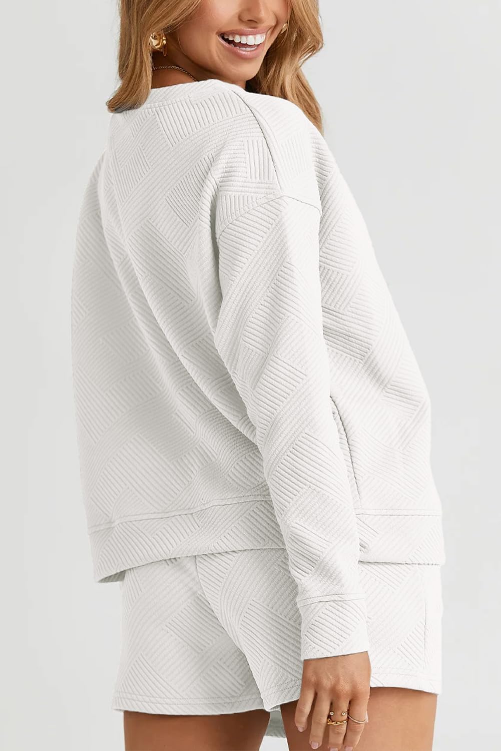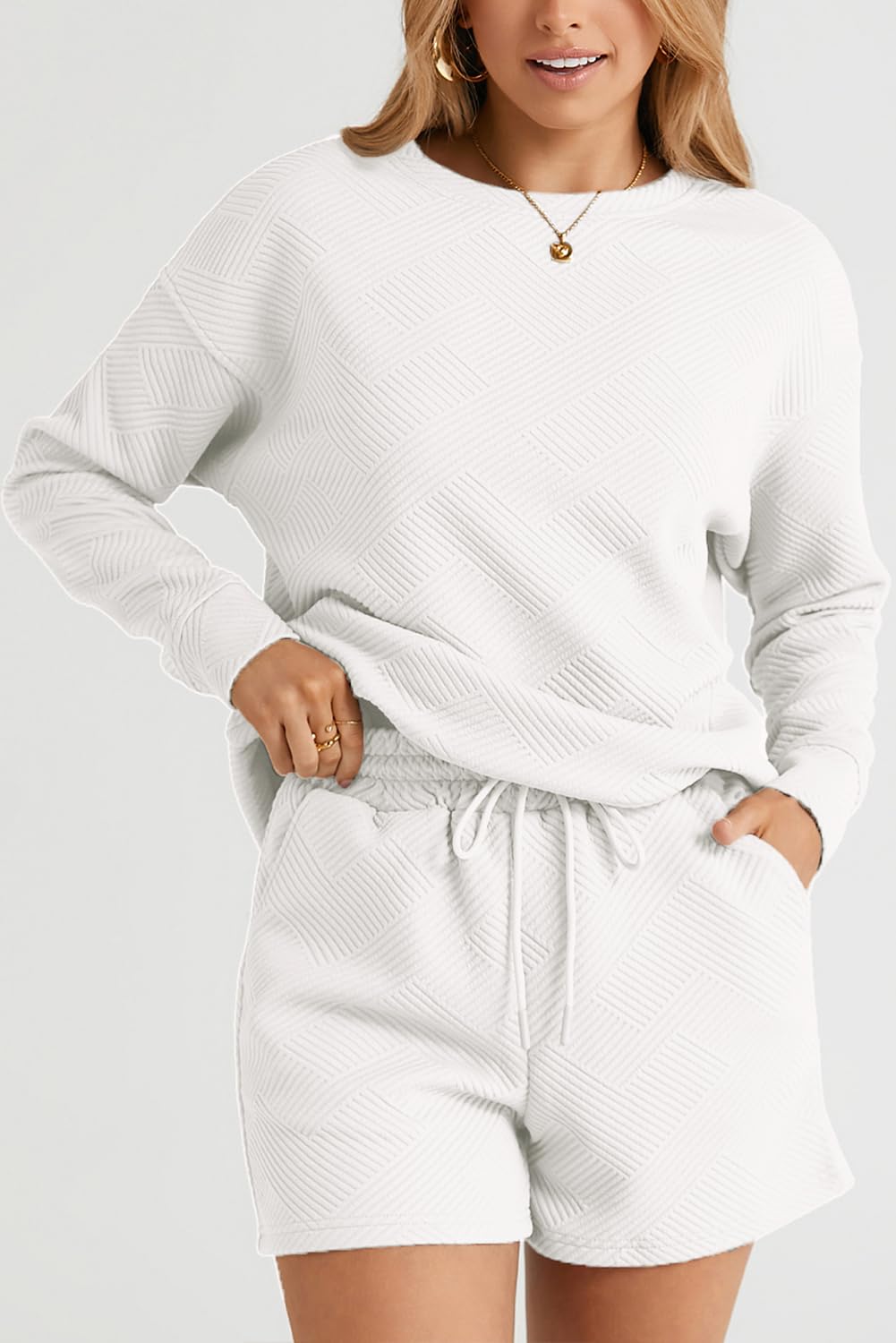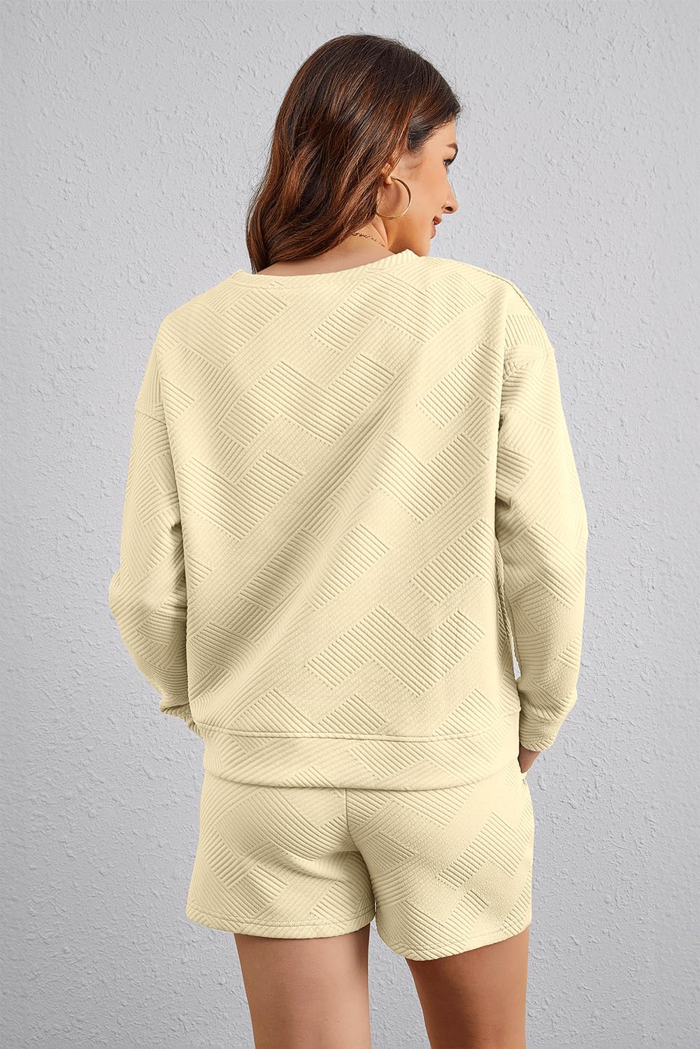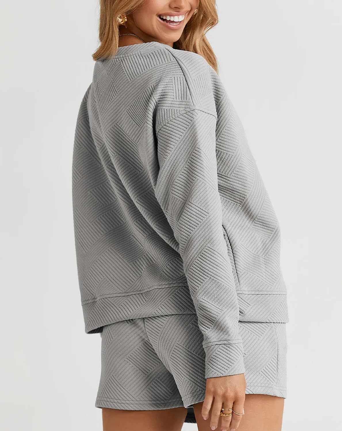 Womens Long Sleeve Pullover and Shorts Texture Set With Pockets