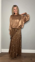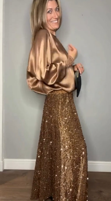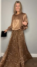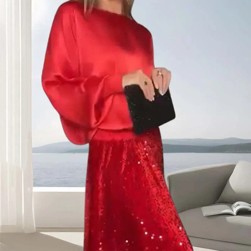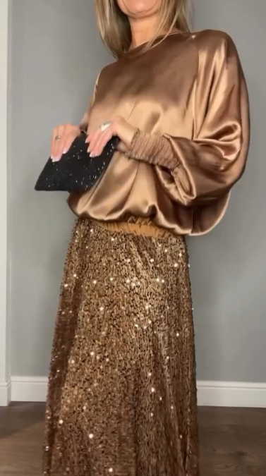 Women's Long Sleeve Top & Sequin Maxi Skirt Two-Piece Set