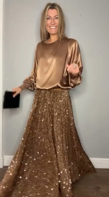 Package Includes: 1* Women's Long Sleeve Top & Sequin Maxi Skirt Two-Piece Set