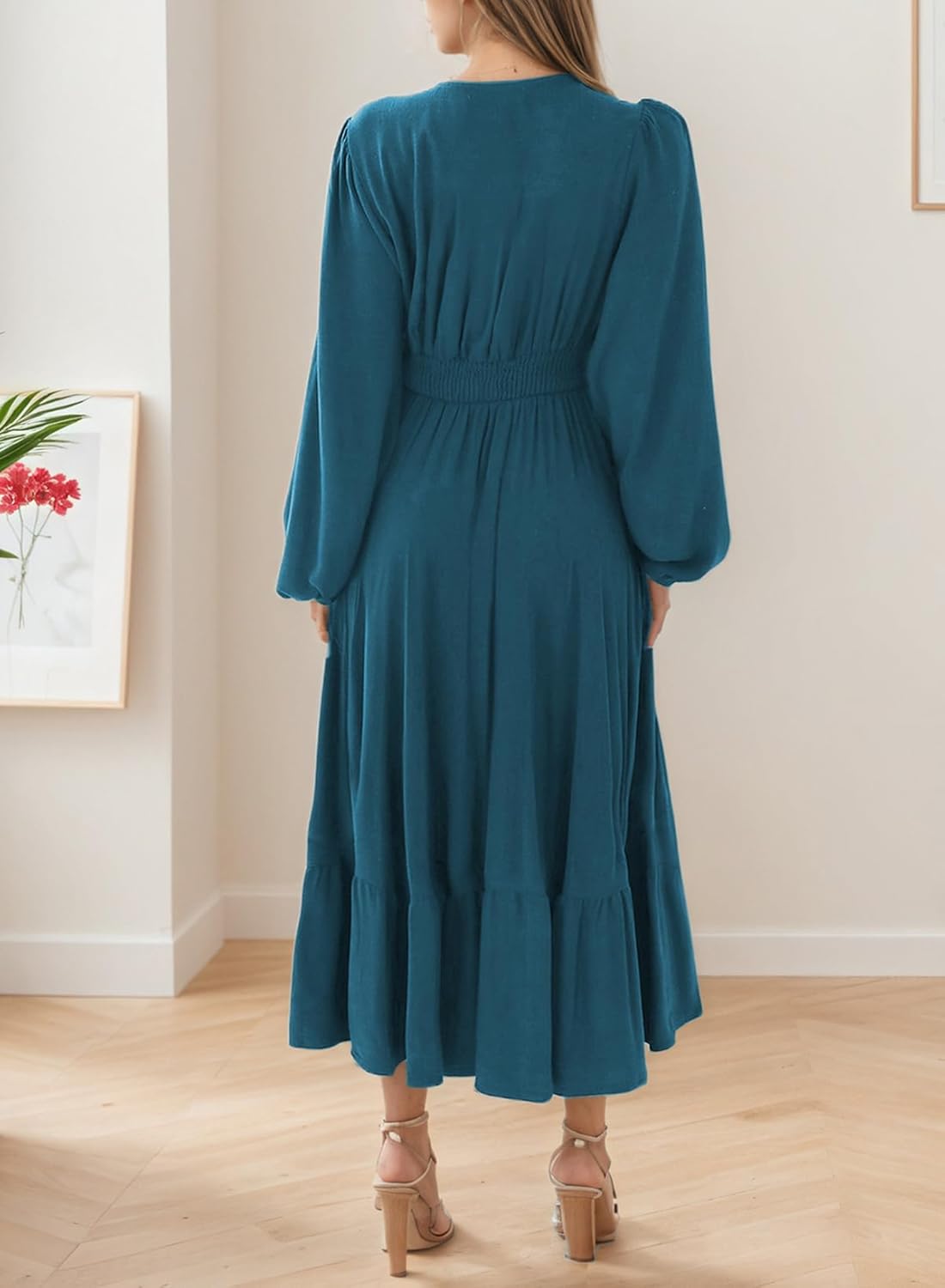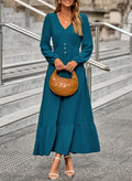 This long sleeve maxi dress is flowy, comfy, and super flattering. The V-neck and waist details give you that easy, feminine look. Perfect for casual days, parties, or a night out.