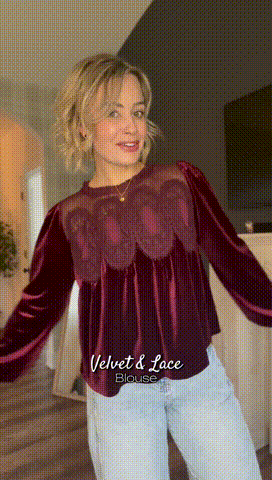 Crafted from a premium mix of soft velvet and intricate lace fabric, this top offers superior comfort with a lightweight, stretchy feel. The luxurious texture combination creates an elegant, sophisticated appearance. It features the delicate lace detailing across the front and back, a feminine flared silhouette, and a soft, flowing hem for a graceful look.