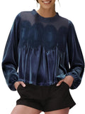 Women's Long Sleeve Velvet Trim Lace Blouse Elegant Flared Swing Top
