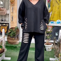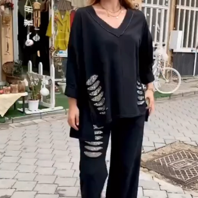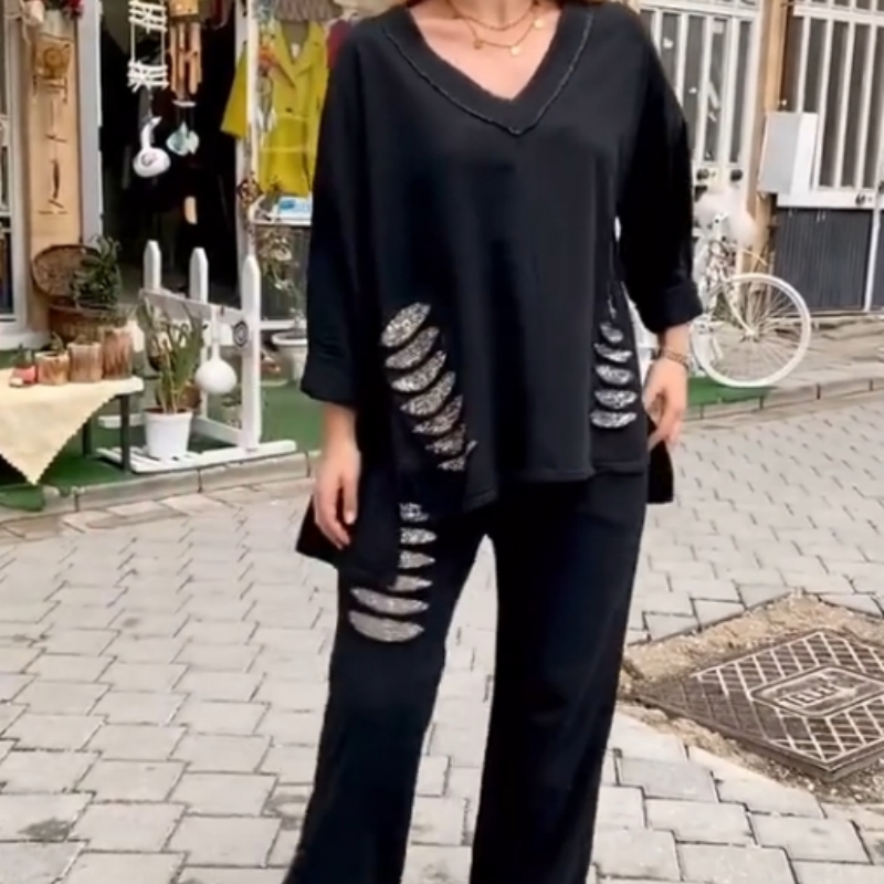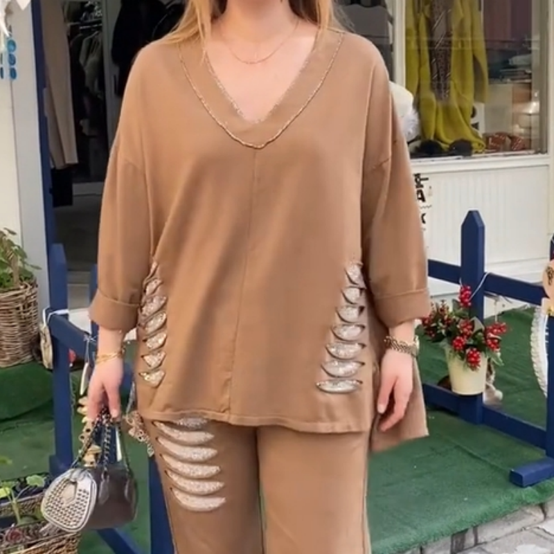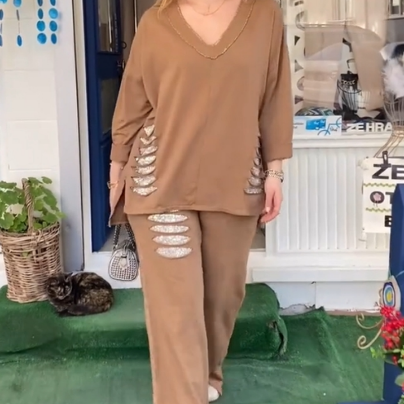 EASY AND STYLISH DESIGN: This stylish two-piece set includes a loose-fitting V-neck long-sleeve top and matching pants that are stylish and casual enough for any occasion.