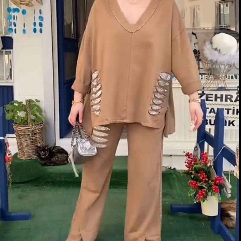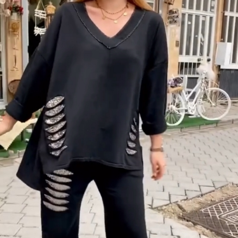 Package Included: 1*Women's Loose V-Neck Long Sleeve Top & Pants Two Piece Set