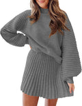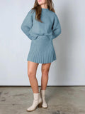 Women's Mock Neck Ribbed Sweaters and Mini Skirt Two Piece Sets
