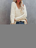 This casual oversized sweater features a front and back V-neck, ribbed edges, and a relaxed fit for a subtle, feminine touch. It can be easily worn as a one-shoulder, off-the-shoulder, or classic V-neck sweater! It pairs beautifully with shorts, jeans, and more for a stylish look.
