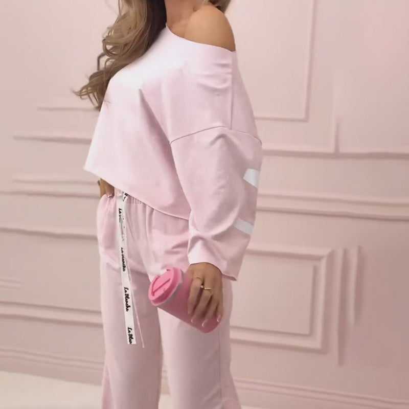 Women's One-Shoulder T-Shirt & Drawstring Waist Pants Set