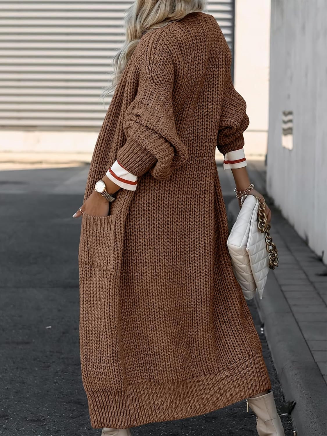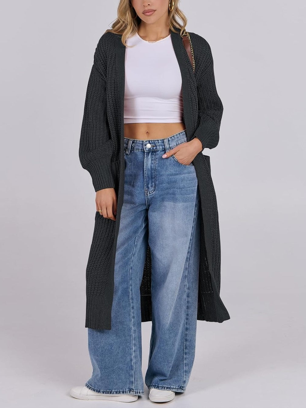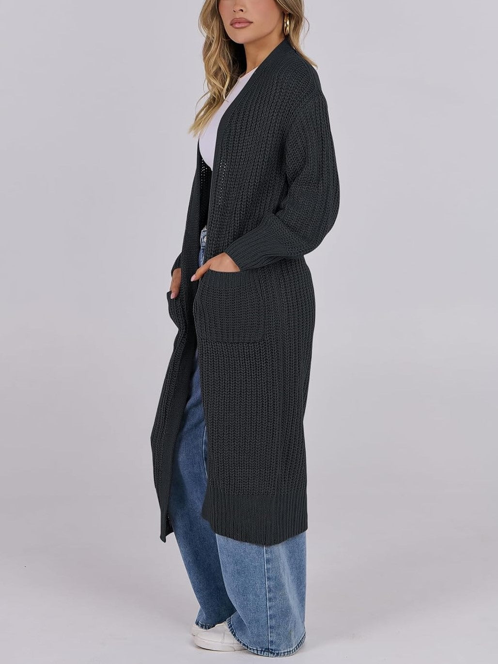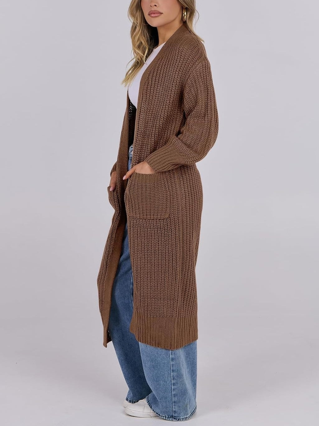 Women's Open Front Knit Long Cardigan Sweaters with Pockets