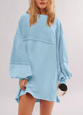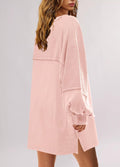 Women's Oversized Crewneck Patchwork Slit Sweatshirt Dress