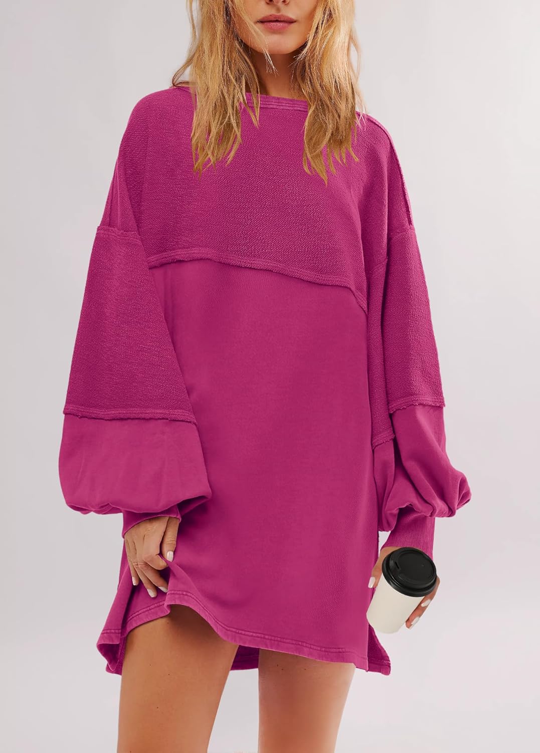 This super cool pullover will never out of style! You can't help but fall in love with it, providing you casual and slouchy wearing experience. This versatile sweatshirt can be worn as a cozy dress or layered over your favorite bottoms.