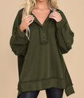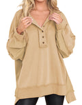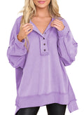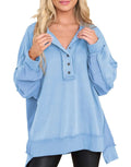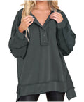 Women's Oversized Henley Casual Buttoned Sweatshirt