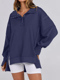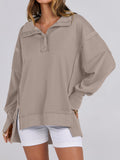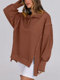 Women's Oversized High Low Split Button Up Henley Pullover Top