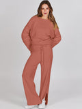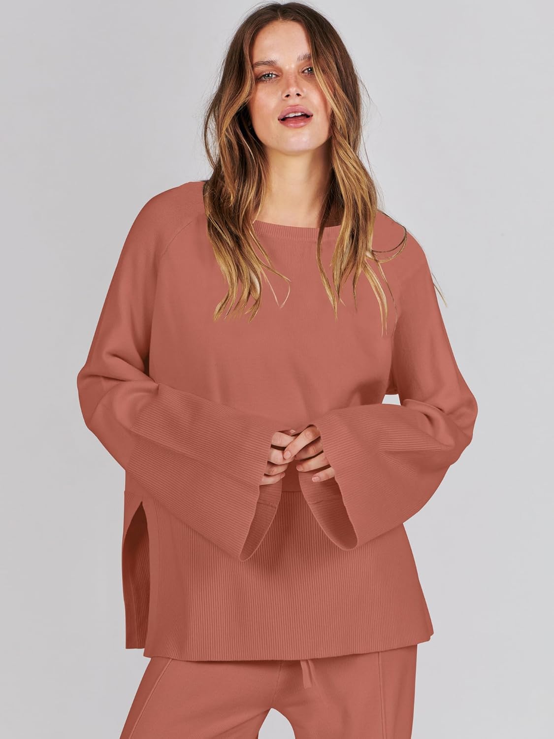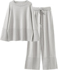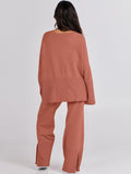 Womens Oversized Knit Sweater Set Wide Leg Pant Cozy Lounge Matching Pajama Sets