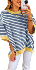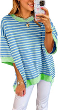 Womens Oversized Striped Color Block Casual Half Sleeve Tops