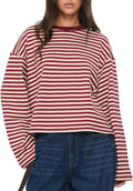 Elevate your wardrobe with this oversized striped cropped long sleeve top, available in brown, green, grey, navy, pink, red, and yellow. Offered in X-Small to X-Large, it seamlessly blends comfort and contemporary style for versatile, everyday wear.