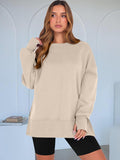 Womens Oversized Thumbhole Long Sleeve Side Slit Pullover Top
