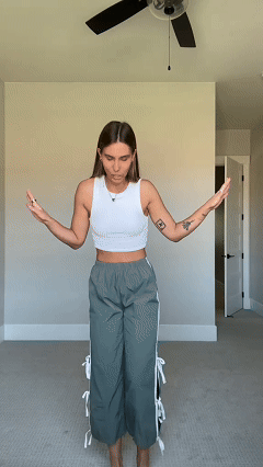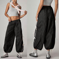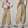 Women's Parachute Pants Elastic High Waist Full Twist Hiking Cargo Pants