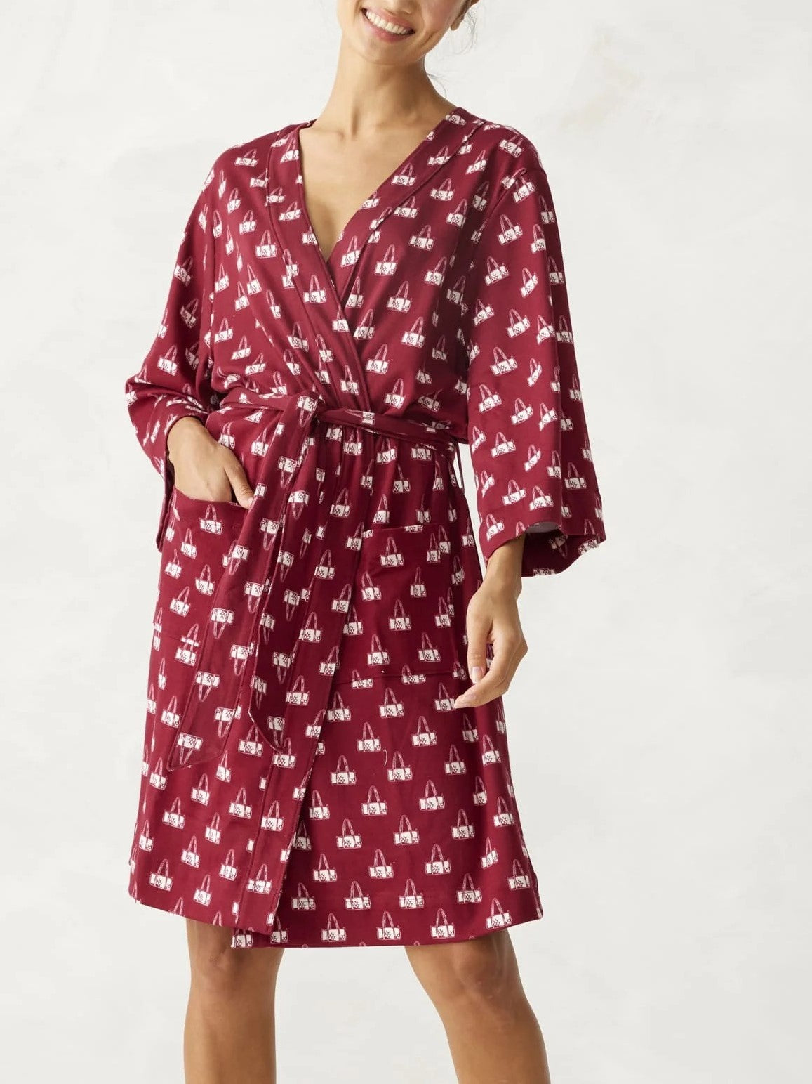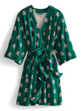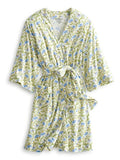 Women's Printed Knitted Tie Pocket Pajama Dress