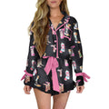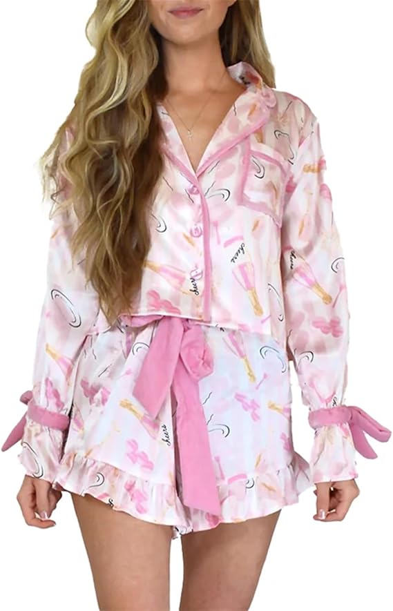 Women heart print pajama set are made of high quality polyester fabric,soft,breathable,lightweight,matching pajama set for women,makes you sleep and leisure very comfortable.