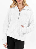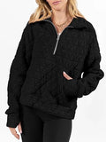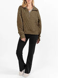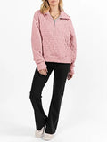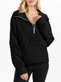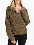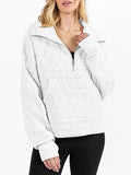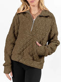Women's Quilted Long Sleeve Quarter-Zip Pullover Sweatshirt with V-Neck Collar