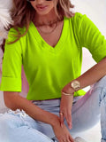 Chic, comfy, and effortlessly stylish—this ribbed V-neck tee is a must-have! The soft, stretchy fabric hugs you just right, while the rolled short sleeves add a relaxed, trendy touch. Perfect for dressing up with jeans or keeping it casual with leggings, this top is your go-to for any occasion.