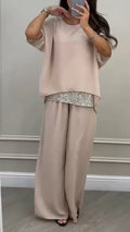 Elevate your casual wardrobe with our Women's Round Neck Shiny Splicing Casual Set. Available in XS to 3XL sizes, this set offers a stylish twist to your everyday look. Experience comfort and fashion with this versatile ensemble.