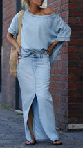 Women's Round Neck Tencel Denim Casual Suit