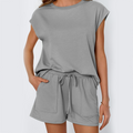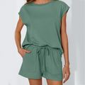 VERSATILE STYLING 2-PIECE SET: This 2-piece set offers endless styling options. The round-neck top and drawstring shorts can be easily mixed with other items for outfit combinations.
