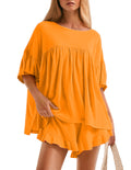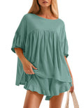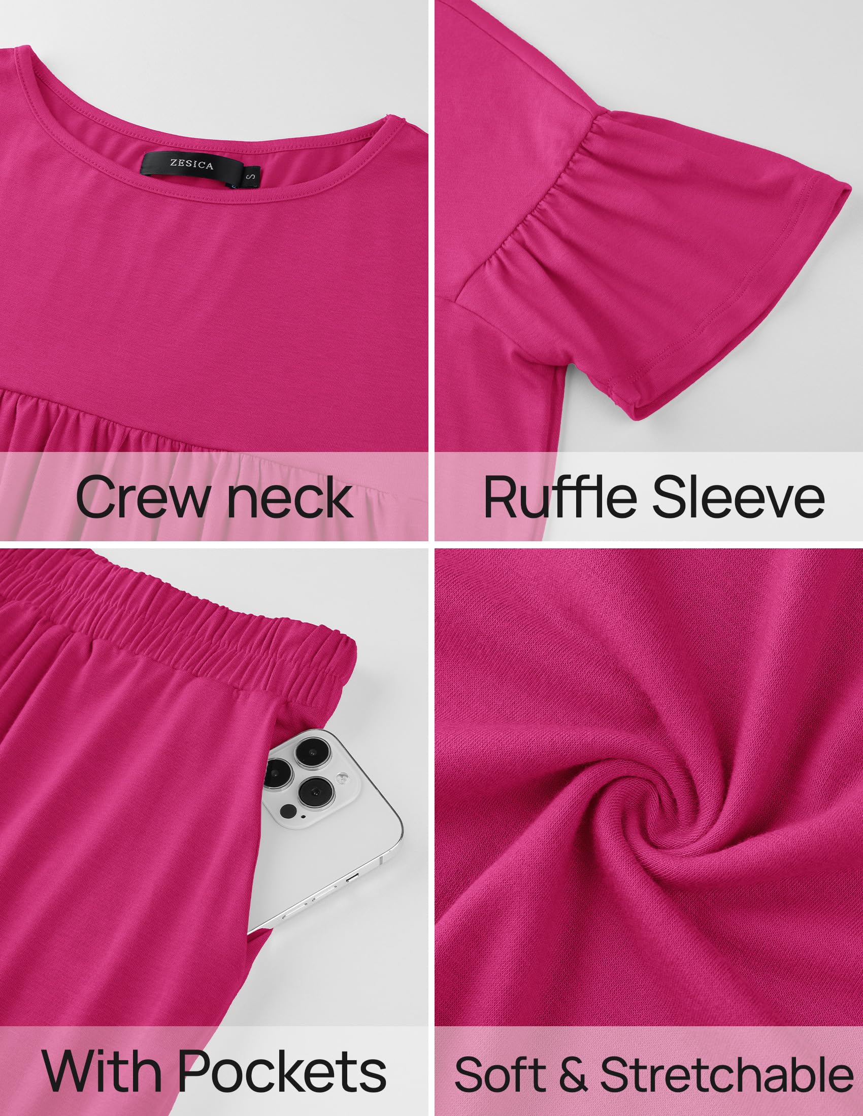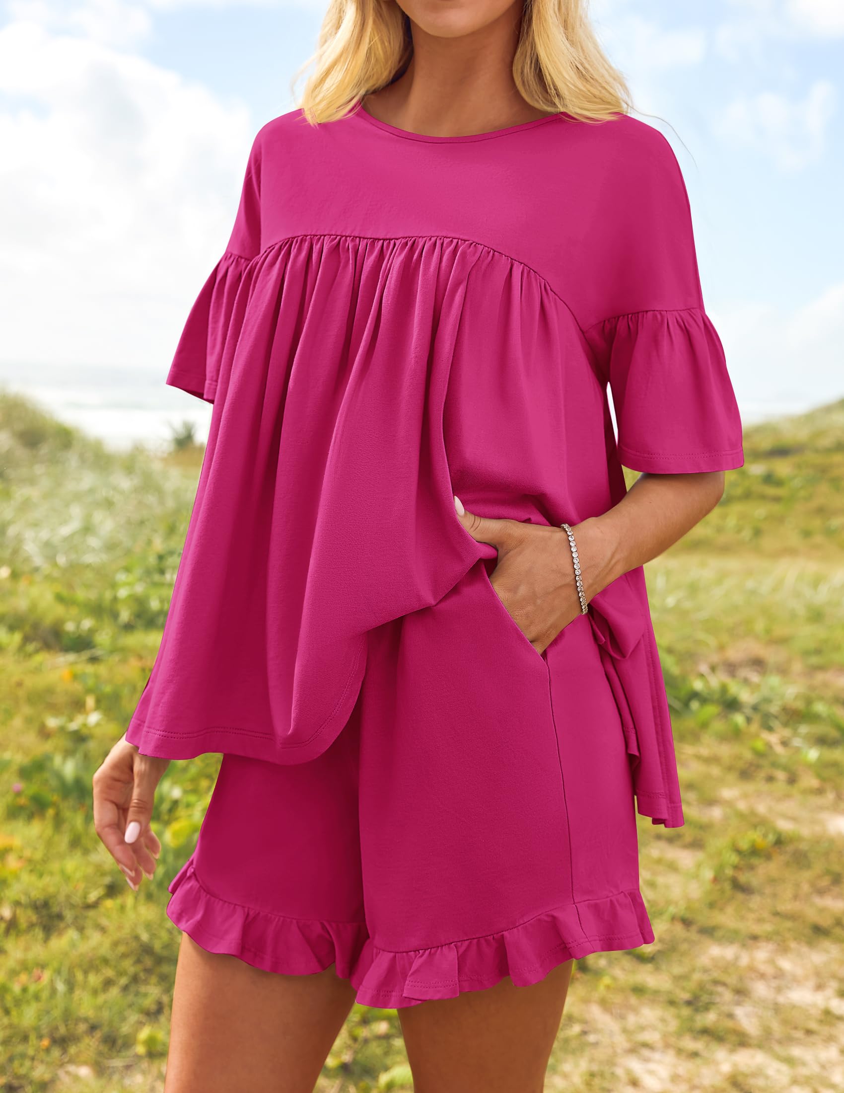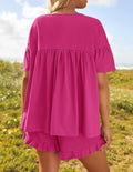 Women's Ruffle Short Sleeve Tops and Shorts Casual Loose Oversized Lounge Sets