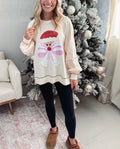 Get into the holiday spirit with our Santa Bow Sequin Pullover! This festive sweatshirt is perfect for Christmas festivities.