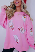 Our oversized Santa Head Sequin Patch Sweatshirt is the perfect choice for achieving a trendy yet comfy look during the holidays. Style with leggings for a cute errand day fit, or your fav denim for a festive holiday party.