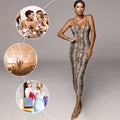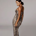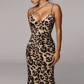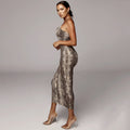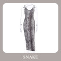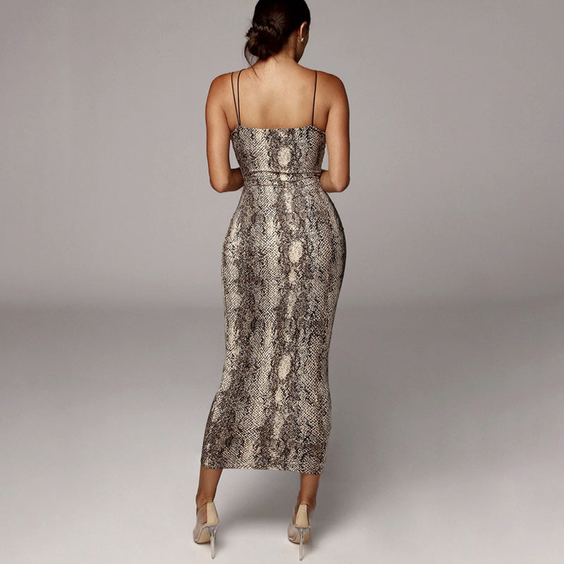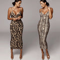 Women's Sexy Spaghetti Strap Leopard/Snake Print Bodycon Maxi Dress