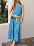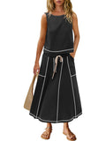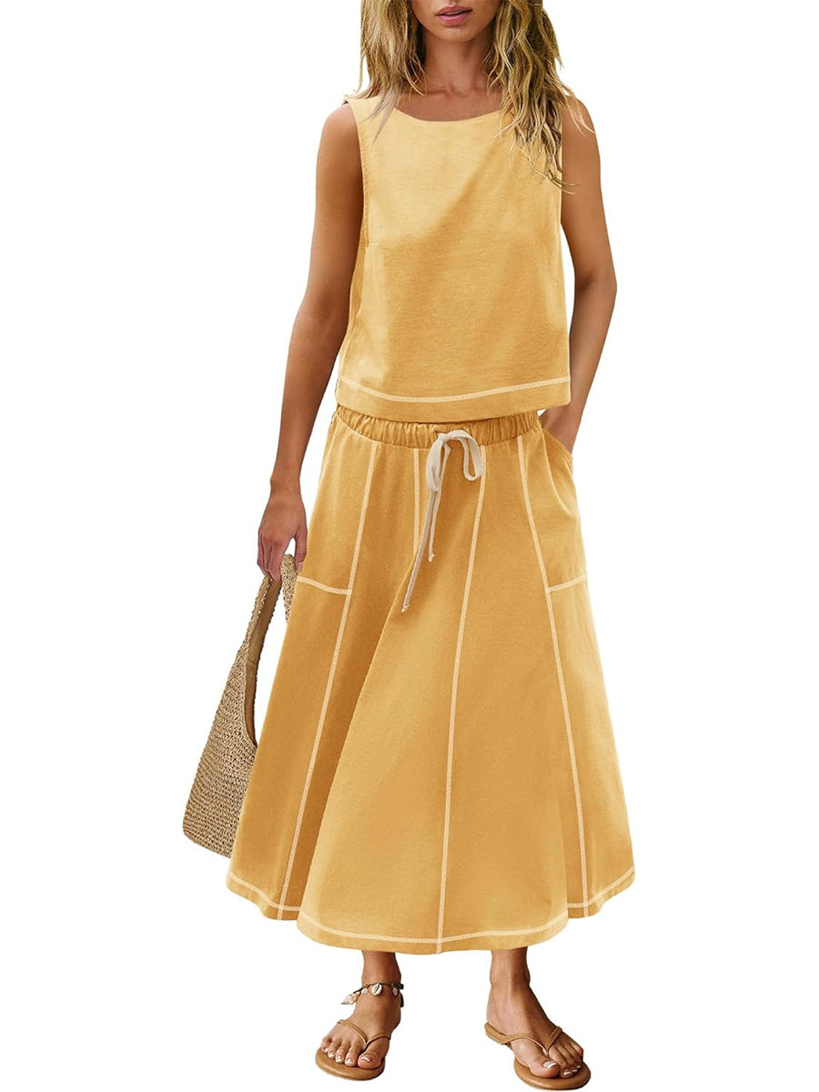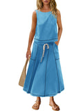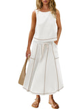 Women's Simple Fashion Sleeveless Top and Drawstring Skirt Two-Piece Set