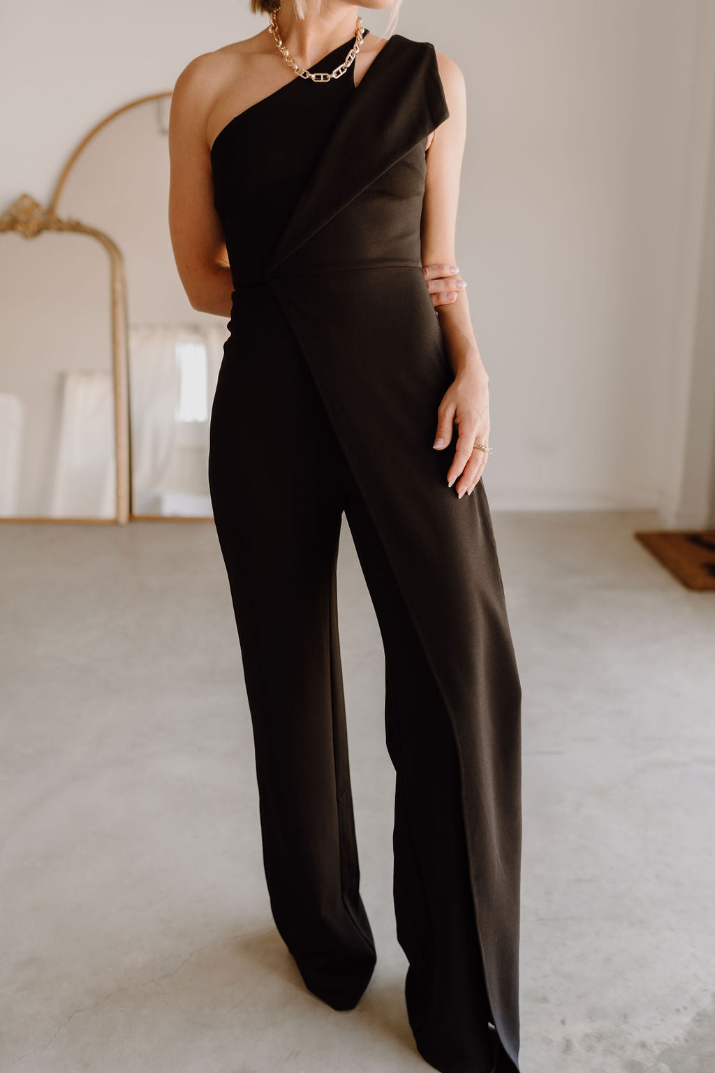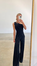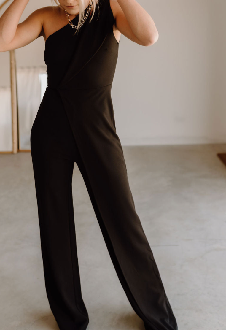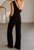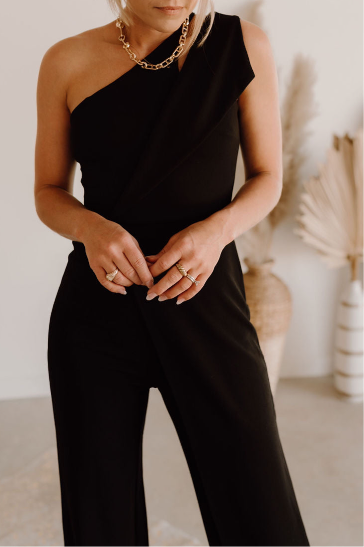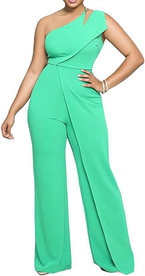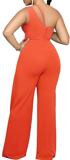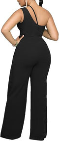 Feature: Zipper Back Design, Cutout, Sexy One Shoulder Neck, Sleeveless, High Waist, Straight Long Pants, Elegant Jumpsuits, Solid Color, Club Party Rompers, Casual Overall Outfits.