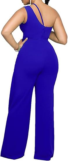 Women's Sleeveless Sexy Cut Out One Shoulder Jumpsuit