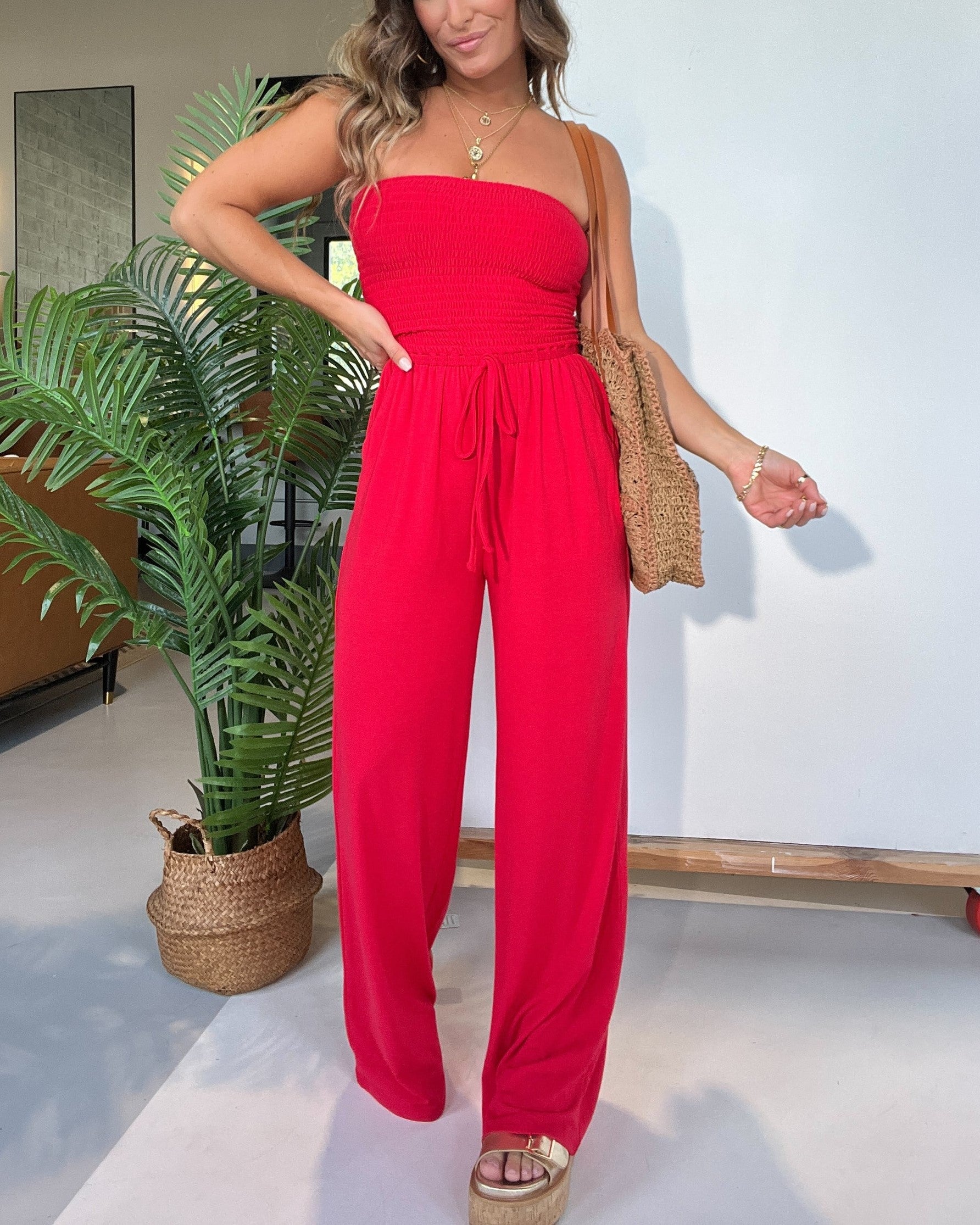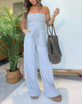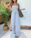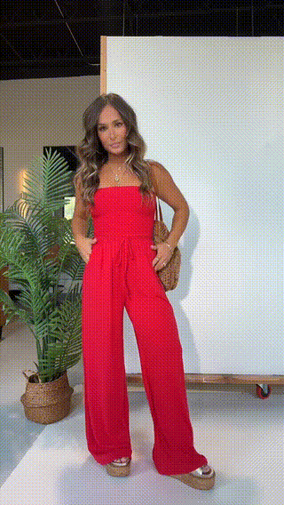 Upgrade your summer wardrobe with our stylish Smocked Tube Top Jumpsuit. Crafted for comfort and versatility, this jumpsuit is a must-have for any fashion-forward woman. Perfect for a day out or a night on the town, you'll love the flattering fit and chic look of this piece.